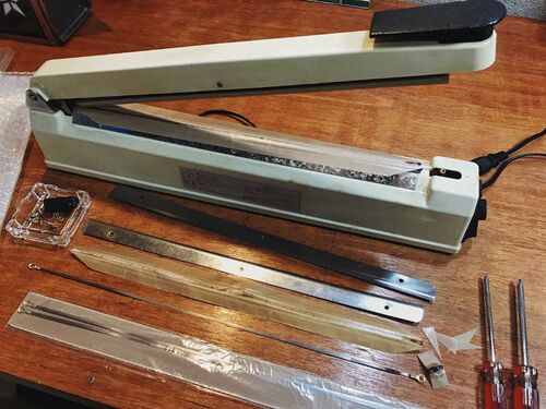 梱包で使うシーラーのお手入れの様子をご紹介。焦げて傷んだニクロム線とテフロンテープの張り替えをします。定期的に交換するだけで、綺麗な圧着面が出来るのでおすすめ!